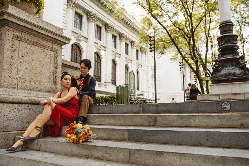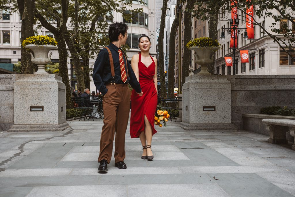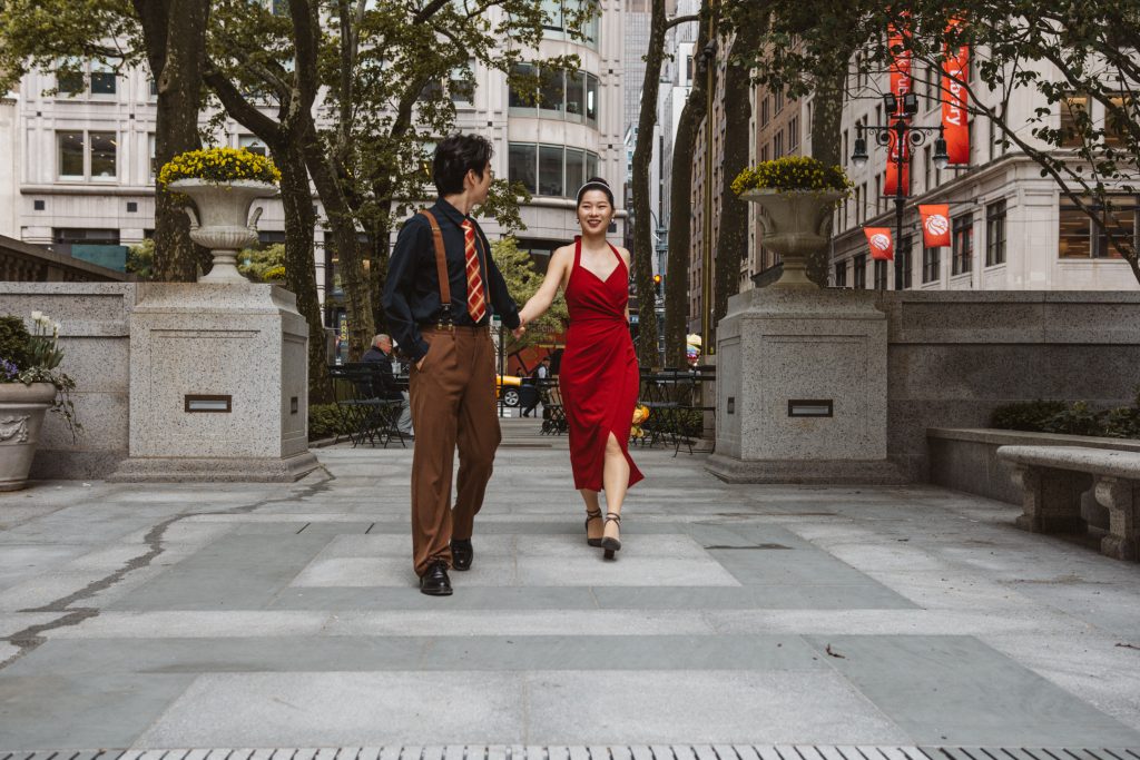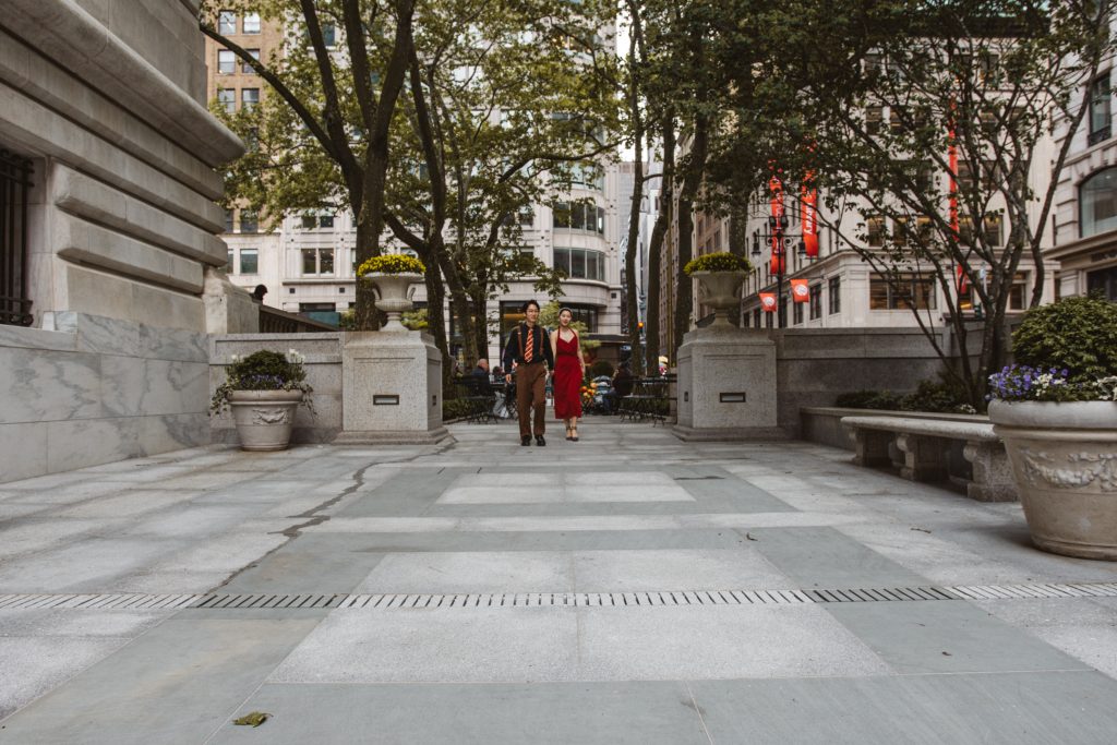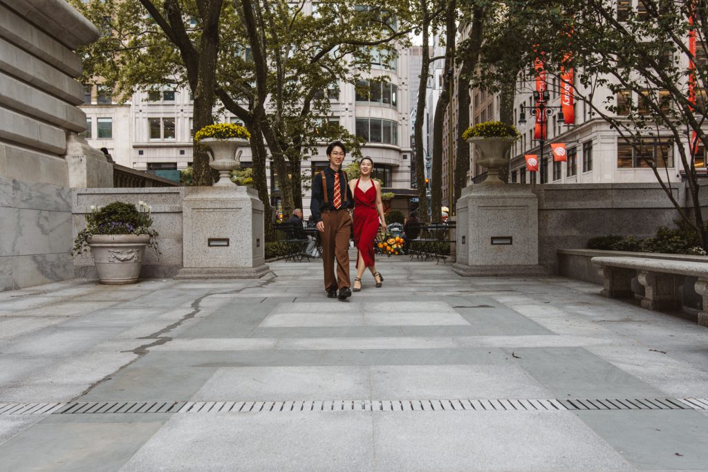 What followed was pure magic — an impromptu engagement photo session in the heart of the city. The spontaneity, the laughter, the glances they exchanged… everything came together so effortlessly. That day, Bryant Park became their canvas, and I was lucky enough to capture the brushstrokes of their love story.
