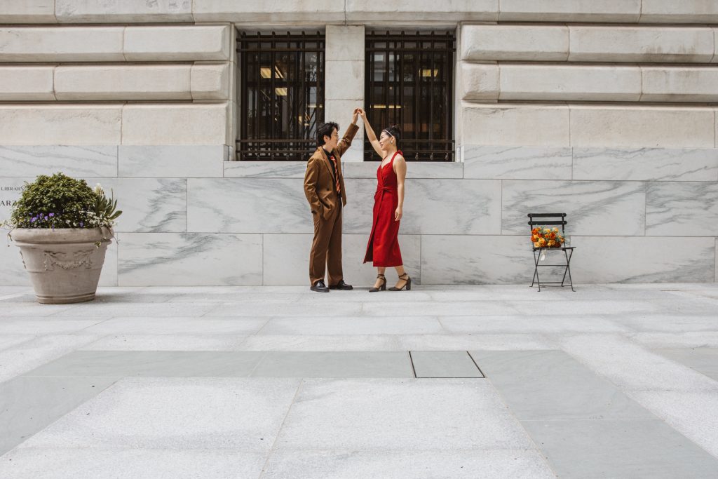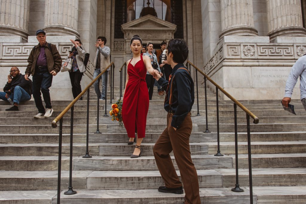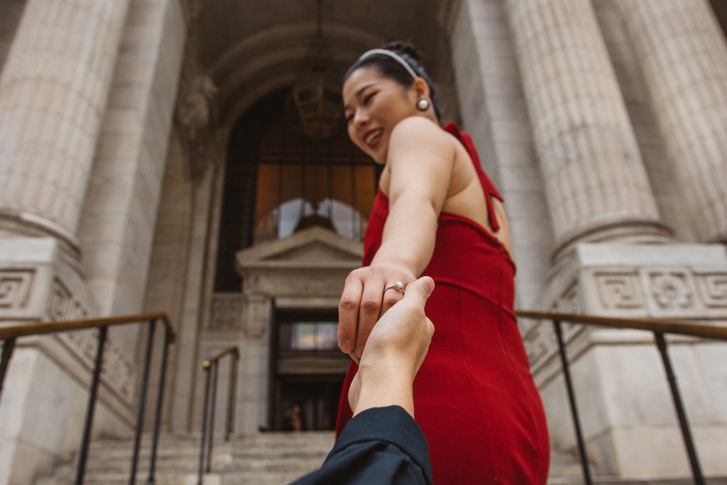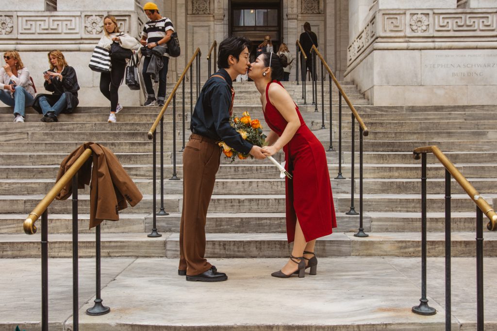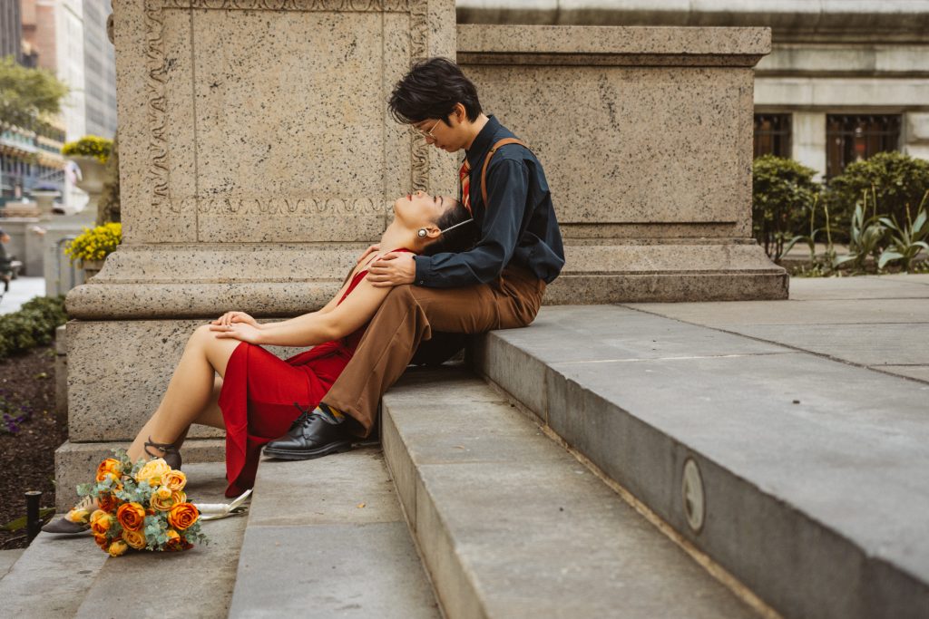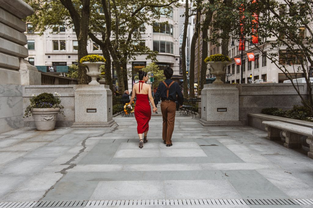 What followed was pure magic — an impromptu engagement photo session in the heart of the city. The spontaneity, the laughter, the glances they exchanged… everything came together so effortlessly. That day, Bryant Park became their canvas, and I was lucky enough to capture the brushstrokes of their love story.